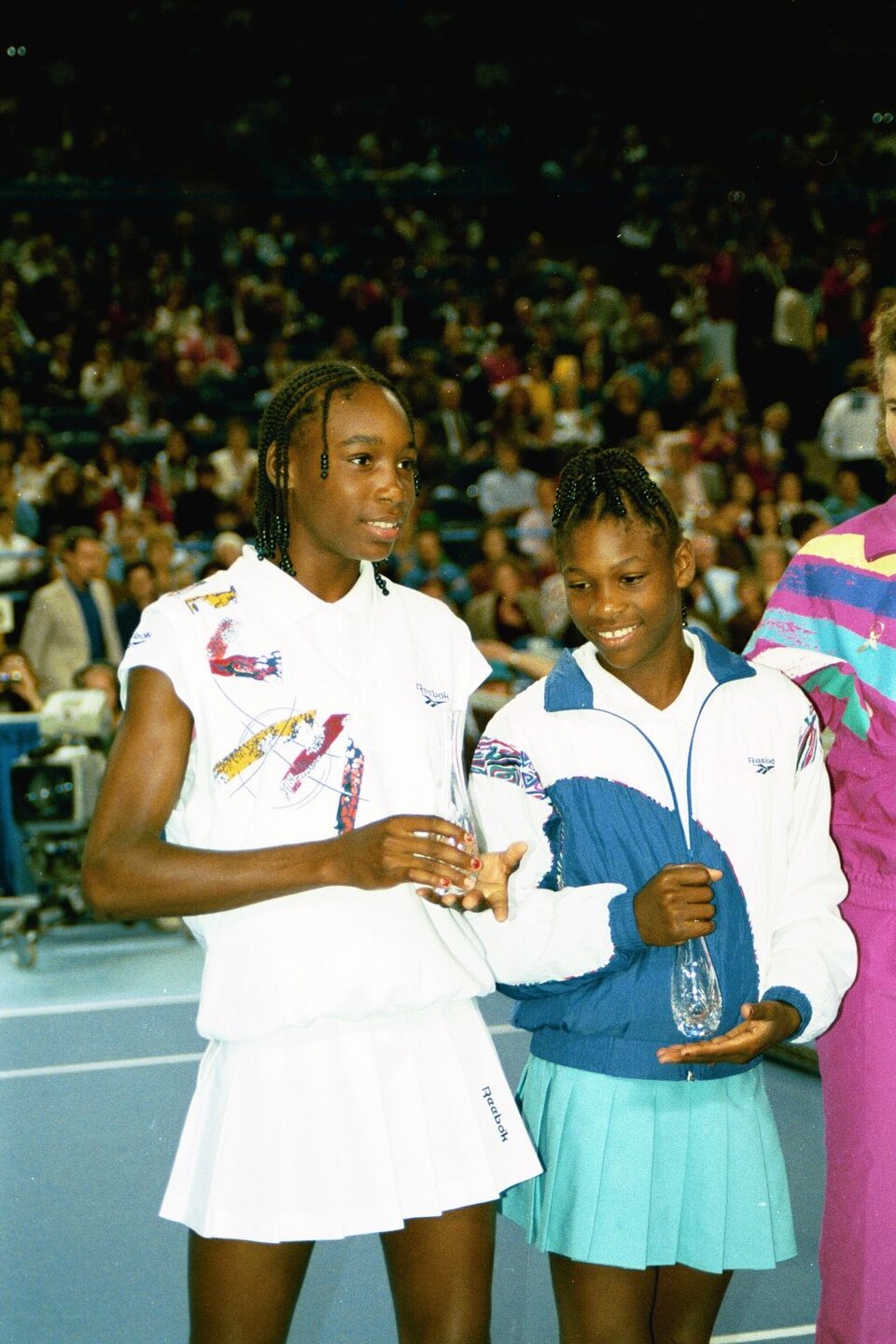Look at this photo of the young Venus and Serena Williams before their doubles tournament.
